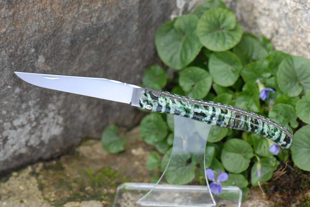 Laguiole 12 cm 1 pièce en molaire de mammouth stabilisé et teintée verte