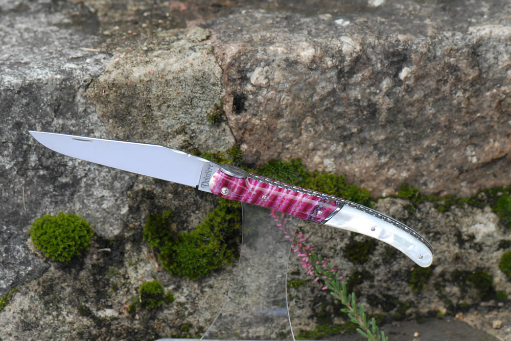 Laguiole 12cm 1pièce en molaire de mammouth rose et nacre.