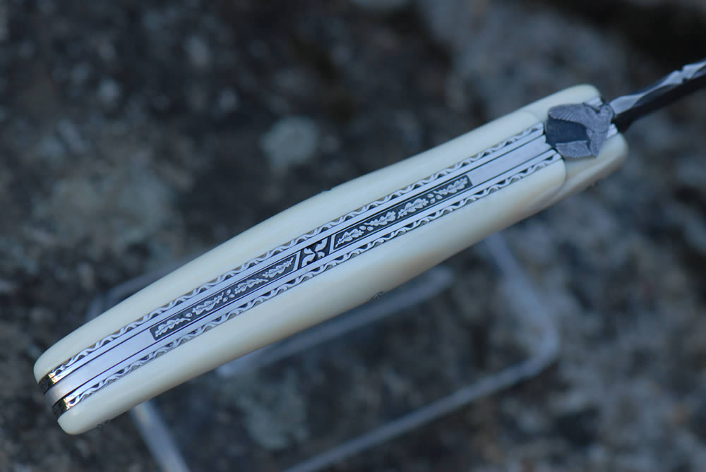 Laguiole 12cm 1 pièce plein double platines, manche en Phacochère.
