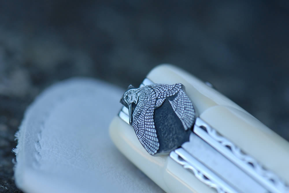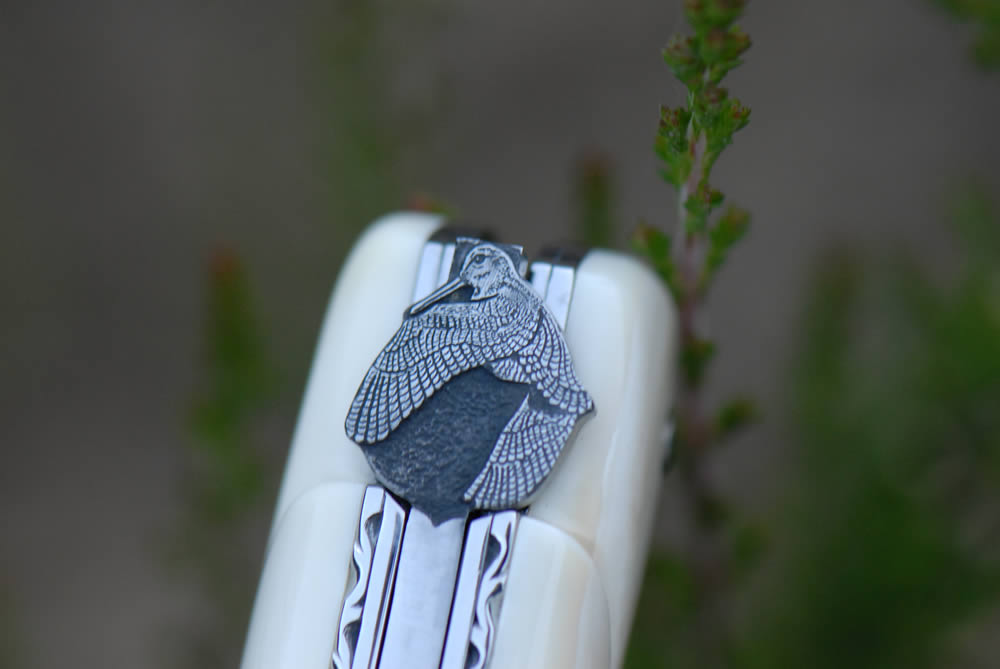 Gravure d’une "Bécasse" à la place de l’abeille, et la gravure de feuilles de chêne sur le ressort.
