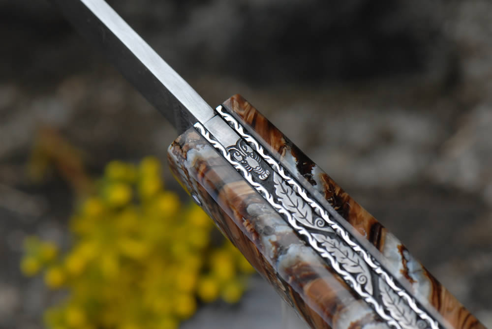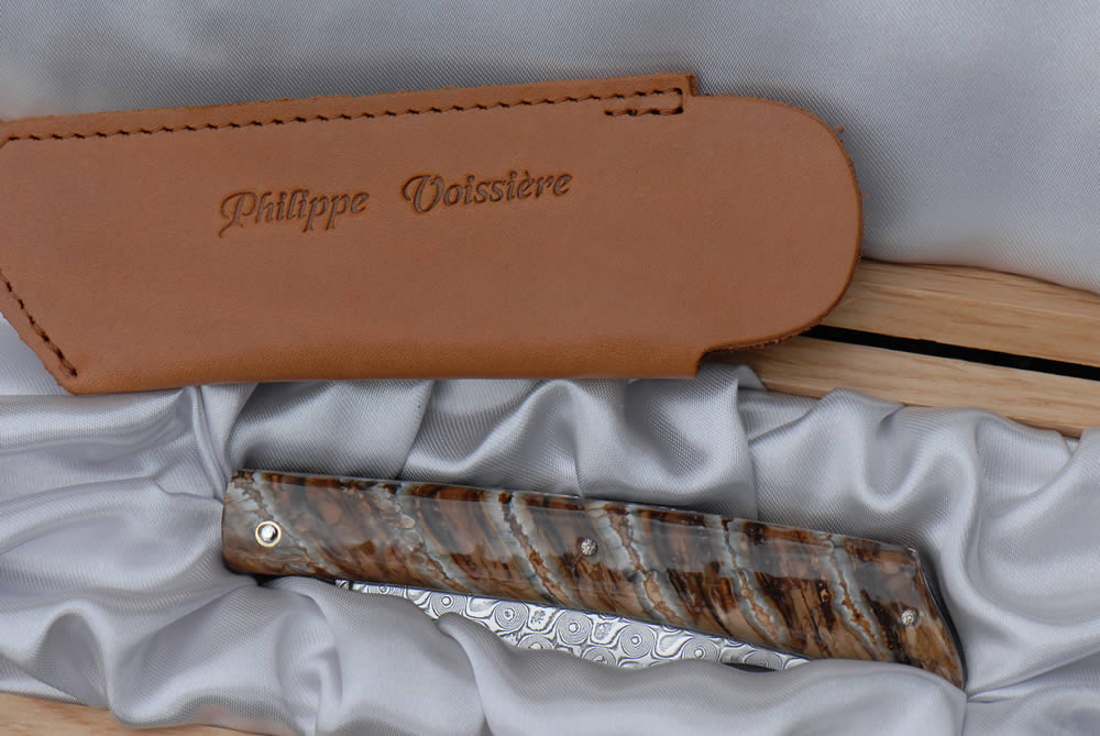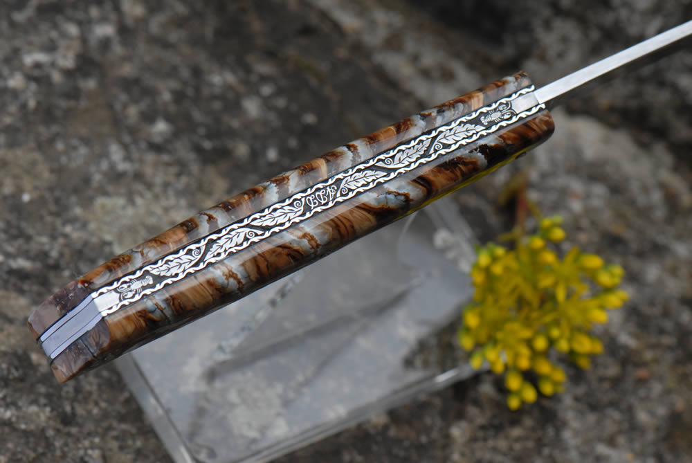 Mandrin 12cm 1 pièce plein manche en molaire de mammouth marron.